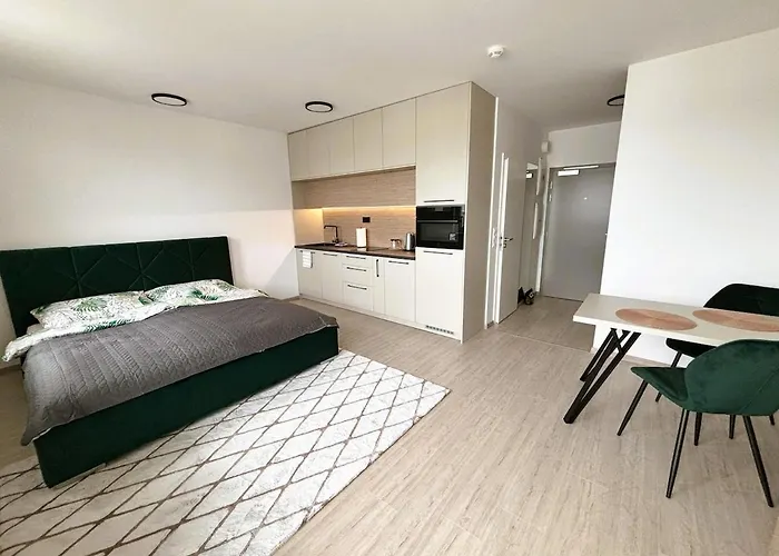 Luxury Studio - 2 Min From Airport - New Build - Free Parking Bratislava – это отличный вариант для остановки в районе Ружинов, в 15 минутах езды от Моста Аполлон. Для максимального комфорта гостей предусмотрели Wi-Fi и бесплатную чaстную парковку.